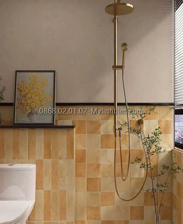 Gạch ốp tường 40x80 cho nhà tắm nên chống trơn, chống thấm tốt. Cách phối gạch nên hướng đến sự thư giãn.