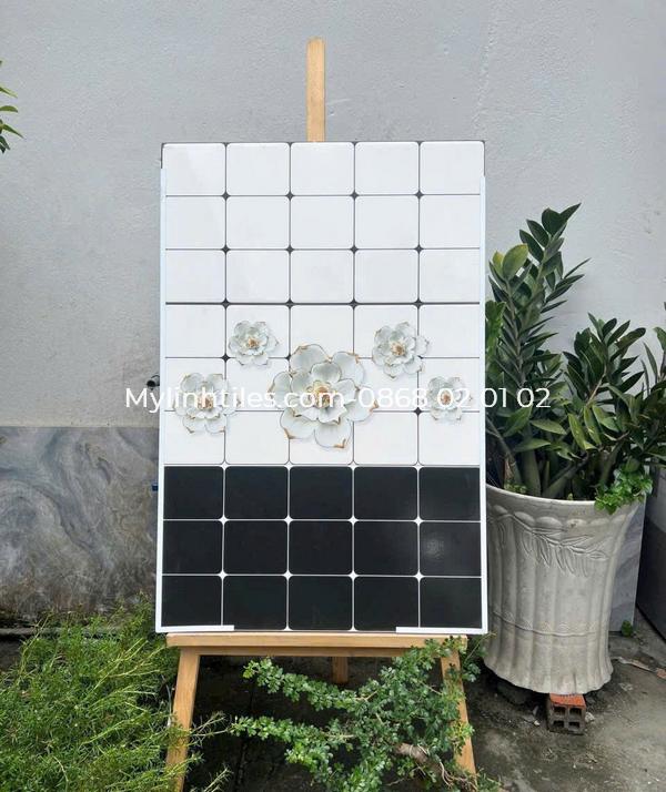 Gạch 30x60 họa tiết hoa sen nổi 3D trắng đen