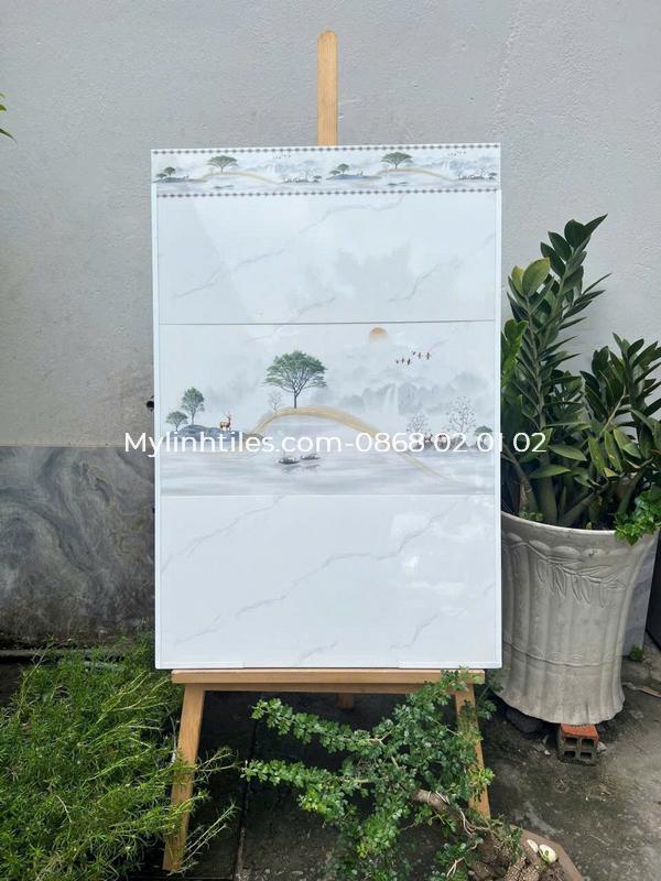 Gạch 30x60 men trắng họa tiết sơn thủy hữu tình