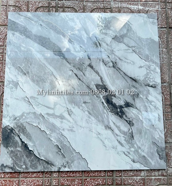 Gạch 80x80 bóng kiếng khắc kim màu xám nhạt