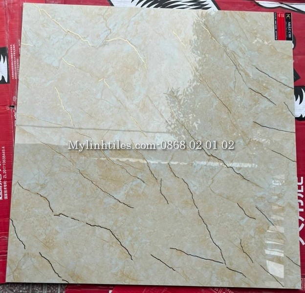 Gạch 80x80 màu kem vàng khắc kim Trung Quốc