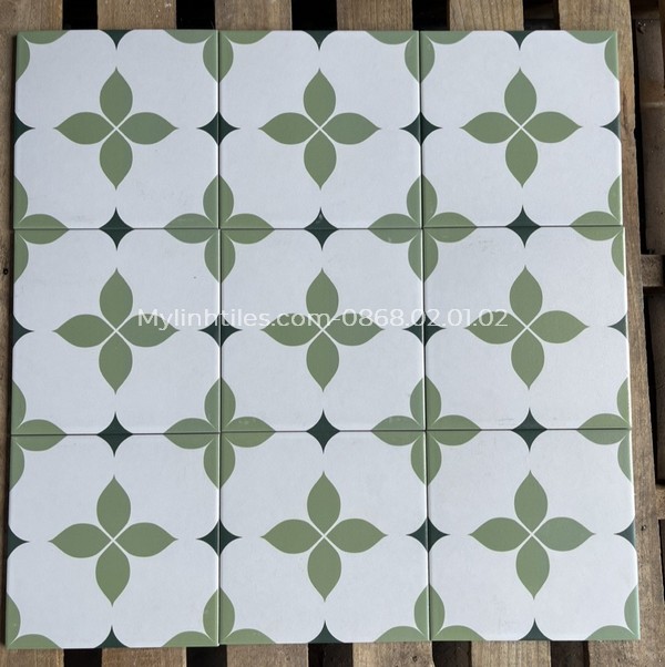 Kết Hợp Với Nội Thất Hiện Đại: Gạch bông với tông màu xanh lá cây nhẹ nhàng trên nền trắng rất dễ kết hợp với các phụ kiện và nội thất phòng tắm có tông màu trung tính như trắng, xám hoặc các vật liệu tự nhiên như gỗ. Điều này giúp tạo nên một không gian hài hòa, thư giãn, hoàn hảo cho những giờ phút thư giãn sau một ngày dài.