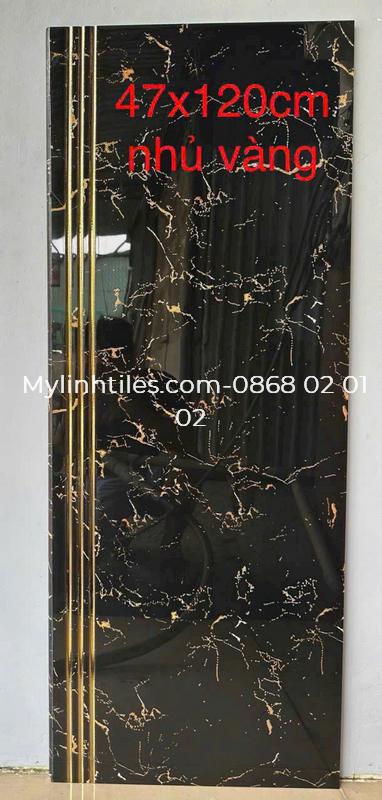 Gạch cầu thang 47x120 hoàng gia đen vân nhũ vàng