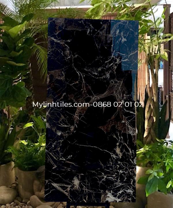 Gạch lát nền 80x160 vân đá đen bóng kiếng nhập khẩu