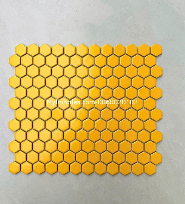- Tên sản phẩm: Gạch lục giác mosaic vàng trang trí quán cà phê
