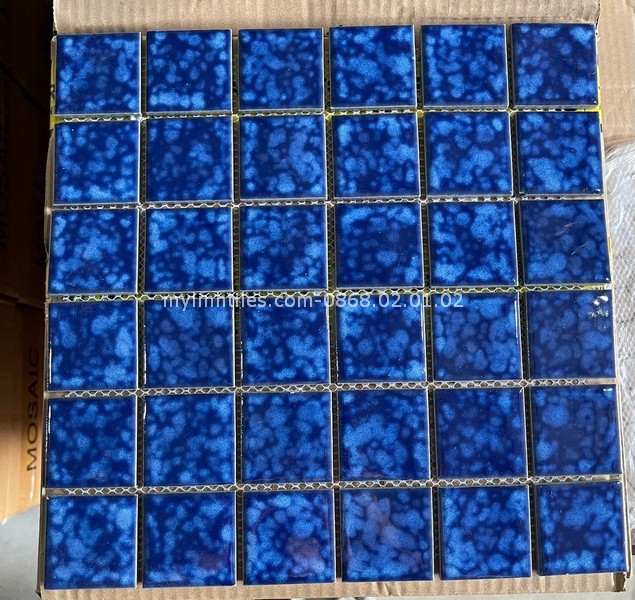 - Tên sản phẩm: Gạch mosaic gốm màu xanh lát bể cá