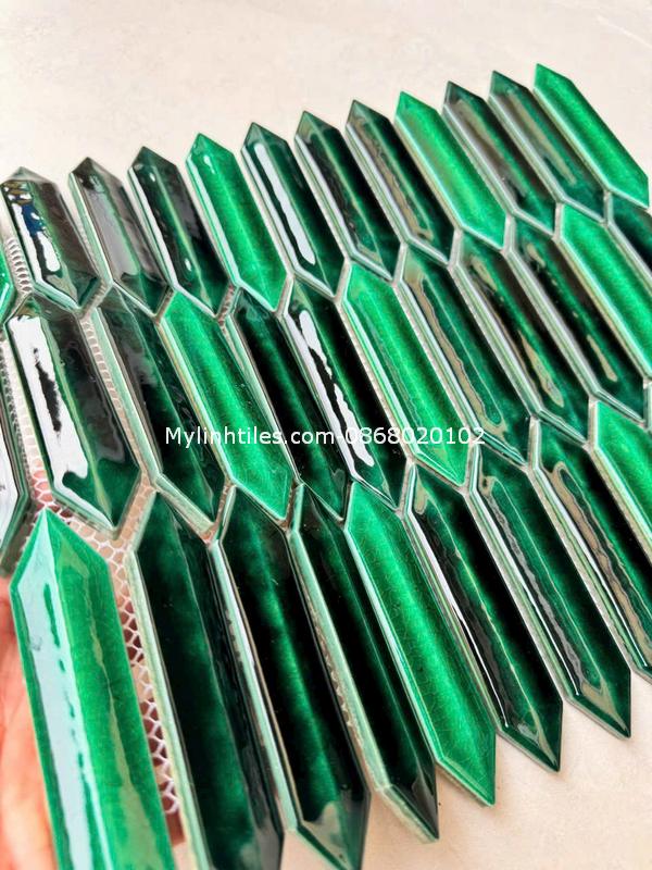 Gạch mosaic hình que diêm màu ngọc lục bảo