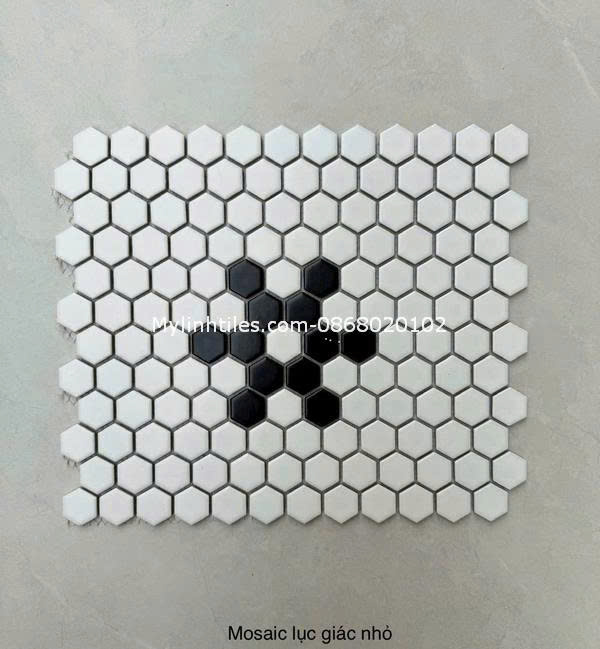 - Tên sản phẩm: Gạch mosaic lục giác nhỏ màu trắng đen phong cách hiện đại