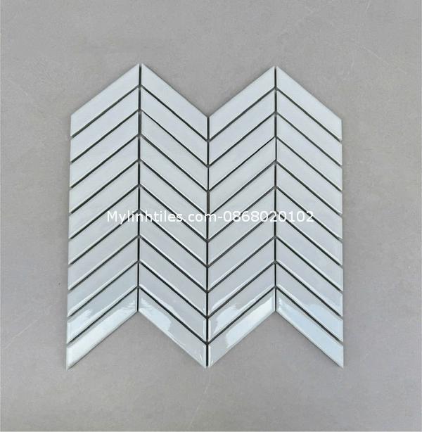Gạch mosaic xương cá là loại gạch được ghép từ nhiều viên gạch nhỏ hình chữ nhật, xếp chồng lên nhau tạo thành hình xương cá. Kiểu dáng độc đáo này giúp tăng thêm chiều sâu và sự sống động cho không gian. Gạch mosaic thường được làm từ các chất liệu như gốm sứ, thủy tinh hoặc đá tự nhiên, nhưng gạch mosaic xương cá màu trắng mà chúng ta đang nói đến chủ yếu được làm từ gốm sứ với bề mặt men bóng, mang đến vẻ đẹp sang trọng và dễ lau chùi.