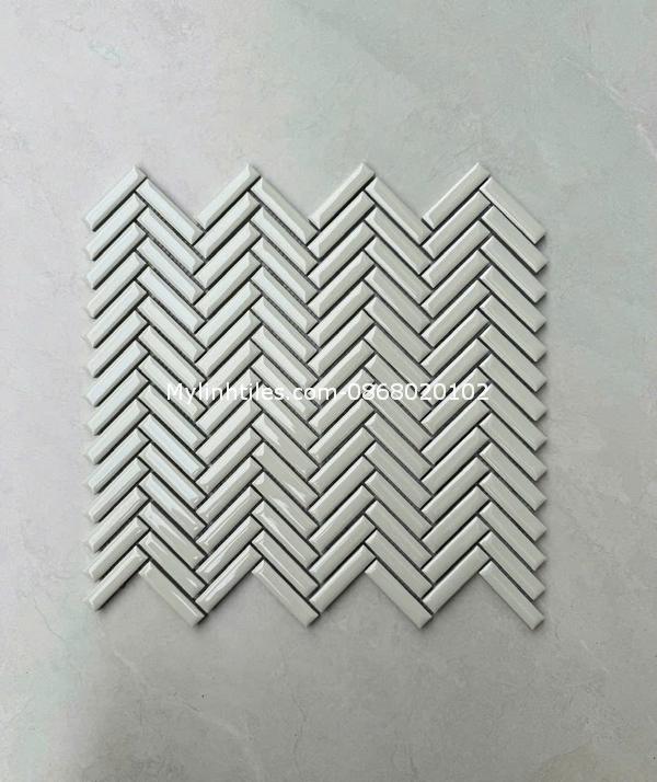 Gạch mosaic xương cá trắng mờ sang trọng giá rẻ