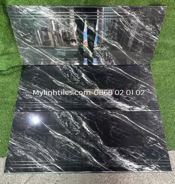 Gạch ốp cầu thang 47x120 vân đá đen bóng cao cấp