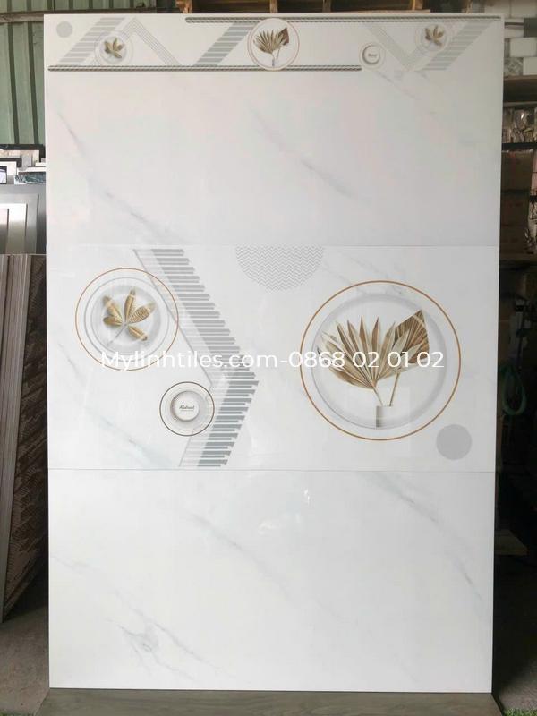 Gạch ốp tường 40x80 vân đá bóng kính họa tiết lá vàng
