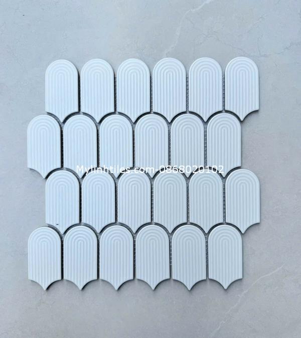 Gạch ốp tường mosaic vân tay màu trắng bóng đẹp