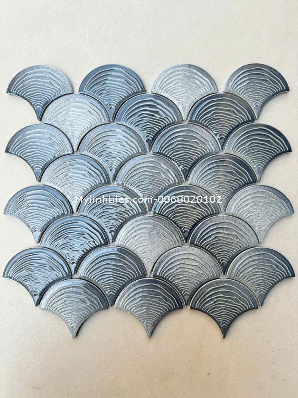 - Thiết kế độc đáo: Hình dáng vảy cá độc đáo, kết hợp với hiệu ứng men rạn tinh tế tạo nên một bề mặt gạch vô cùng sống động và bắt mắt.