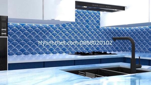 - Tên sản phẩm: Gạch vảy cá xanh dương trang trí bếp đẹp