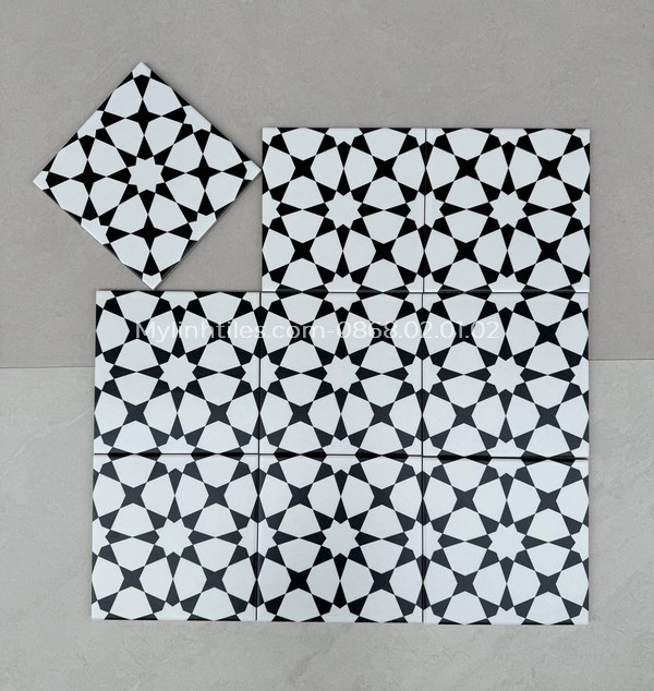 Gạch bông cổ điển với kích thước 20x20cm là kích thước phổ biến, phù hợp với nhiều không gian khác nhau từ nhà ở, quán cà phê, đến nhà hàng hay khách sạn. Đặc biệt, bề mặt phủ men mờ tạo cảm giác mịn màng nhưng không trơn trượt, giúp giữ vẻ đẹp lâu dài, hạn chế bám bẩn và dễ dàng vệ sinh.